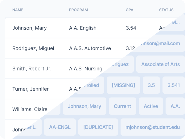 Seamlessly connect SIS, LMS, CRM, and other campus systems to eliminate manual data cleanup, automate reporting, and drive student success with trusted insights.