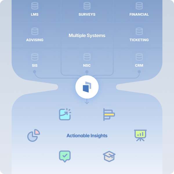 When data lives across SIS, LMS, CRM, and more, colleges only see fragments of the student journey - making it impossible to act on a complete picture.