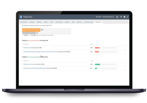 Many colleges don't have the data or predictive analytics capabilities to identify which students are at risk of dropping out or failing to graduate, limiting their ability to intervene early enough to have an impact.